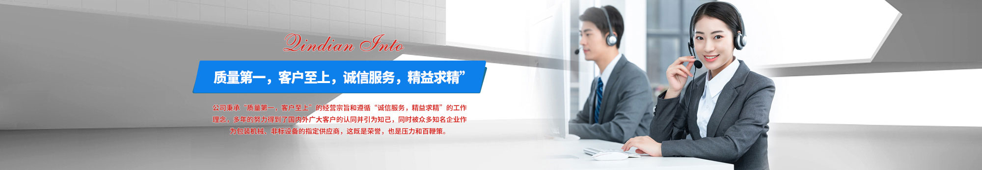 公司秉承“質量為本,客戶至上”的經營宗旨和遵循“誠信服務,精益求精”的工作理念,多年的努力擁有了國內外廣大客戶的認同并引為知己,同時被眾多知名企業作為包裝機械、非標設備的指定供應商,這既是榮譽,也是壓力和百鞭策 在此,我們對新老客戶表示衷心的感謝,在今后漫長的歲月里歡迎您隨時來人,來電,來函垂詢洽購,我們愿真誠為你提供盡善盡美的服務。